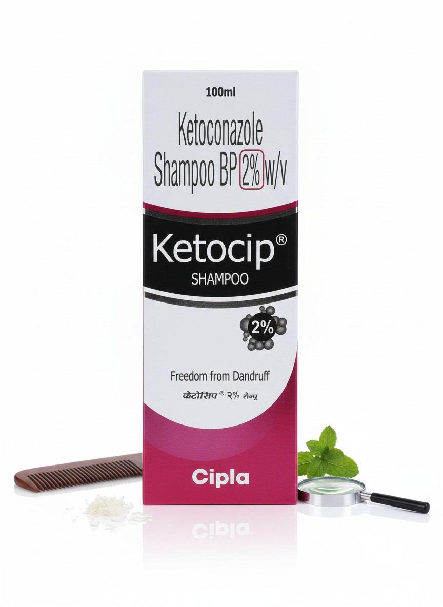 Ketocip 2% Shampoo by Cipla is a medicated anti-dandruff shampoo formulated with Ketoconazole 2% w/v. It helps treat stubborn dandruff, flaking, itching, and fungal infections of the scalp. Designed for fast relief, it restores scalp health and leaves hair clean and refreshed. Recommended for use as directed by a dermatologist. --- Key Features / Bullet Points Ketoconazole 2% Formula – Powerful antifungal ingredient Effectively Treats Dandruff – Helps reduce flakes, itching & scalp irritation Controls Fungal Infections – Suitable for seborrheic dermatitis & stubborn dandruff Restores Scalp Health – Promotes a clean, healthy, and fresh scalp Dermatologist Recommended – Use exactly as prescribed From Cipla – Trusted pharmaceutical brand